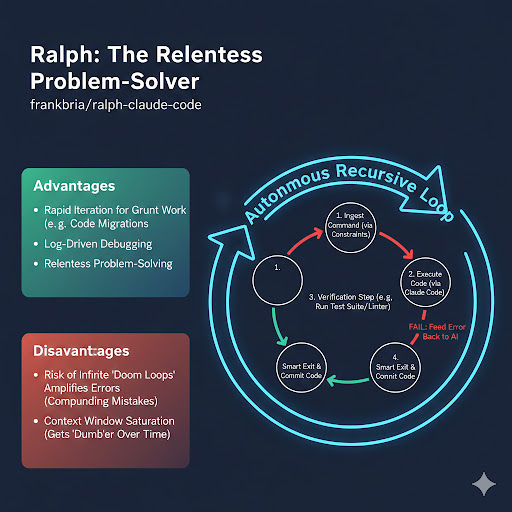Ralph’s relentless nature is also its biggest vulnerability. If the verification signal is ambiguous (e.g., “Resource Locked”), Ralph might enter a “doom loop,” attempting increasingly destructive “fixes” (like force-unlocking state or deleting resources) to satisfy its condition. Its continuous context window also makes it susceptible to “Context Rot” over longer tasks, leading to erratic behavior.